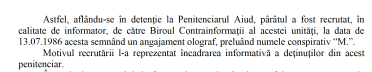 ,,Motivul recrutării l-a reprezentat încadrarea informativă a deținuților din acest penitenciar‘‘ se reține în sentință, care citează din nota de recrutare pusă la dispoziție de CNSAS. Rețineți data: 13 iulie 1986.