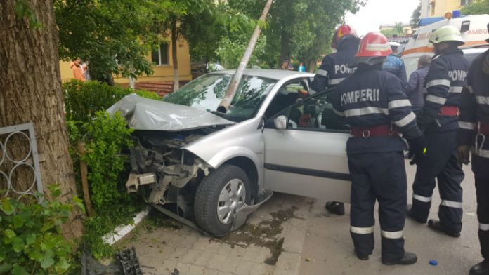 Autoturismul a lovit un copac și un stâlp de electricitate.