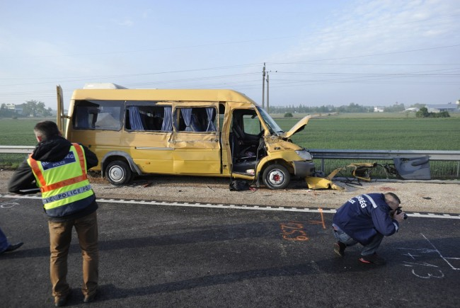 Din primele informații șoferul microbuzului ar fi efectuat o depășire neregulamentară izbindu-se violent de remorca unui autotren.