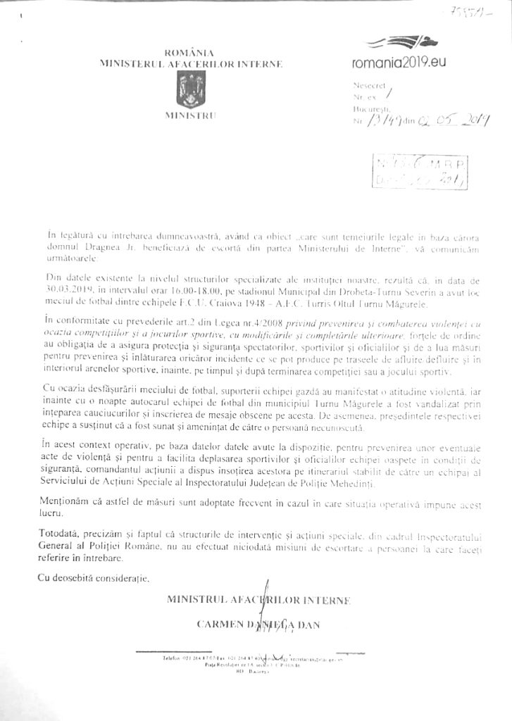 ,,Autocarul echipei lui Dragnea jr.,a fost vandalizat în Drobeta, cauciucuri tăiate, vopsit cu semne obscene și că doar un echipaj al IPJ Mehedinți- Serviciu de Acțiuni Speciale a însoțit echipa de sportivi și pe oficialii clubului, respectând itinerariul stabilit,, …Citiți răspunsul lui Carmen Dan.