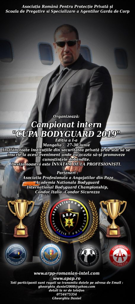 În luna iunie se va desfășura primul campionat intern (sâmbătă 29 și duminică 30 iunie) numit „CUPA BODYGUARD 2019” la Mangalia -statiunea 2 Mai (concomitent stagiu de pregatire practica – joi 27 și vineri 28 iunie).