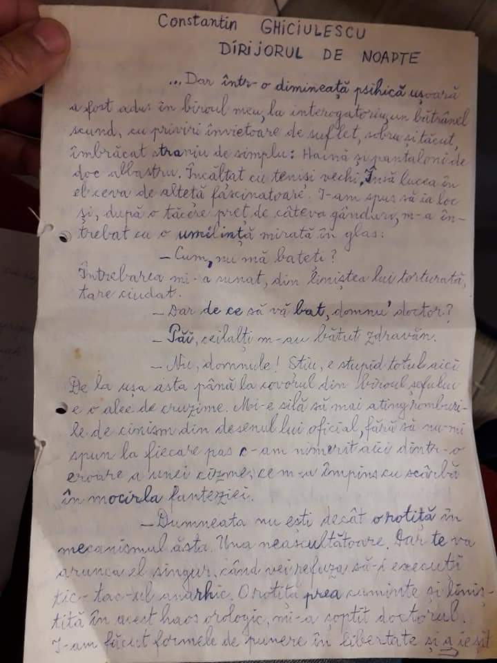 A DISPĂRUT DE 30 DE ANI și doar un singur textuleț , cel publicat acum, a ajuns în mâinile mele, TATĂL MEU, Constantin GHICIULESCU, la înmânat spre publicare, (nu -i singura lucrare dispărută ), dar acest roman și altele, din motive ce nu au ținut de calitatea lucrărilor, nu numai că nu au văzut lumina tiparului dar au și dispărut ”