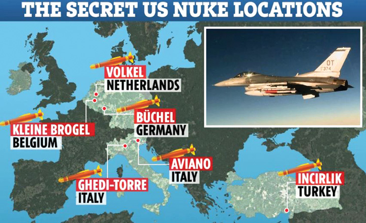 „Uitat” pe un scaun la Adunarea Parlamentară a NATP, un incendiar raport oficial al Alianței Nord-Atlantice a ajuns, cum altfel, în mâinile jurnaliștilor, iar informațiile din el riscă să arunce în aer (evident!) relațiile pe axa Europa – America. SUA au depozitate bombe nucleare în mai multe țări de pe continent! În Belgia deja se duce o campanie puternică prin care Washingtonul este invitat să-și mute în altă parte focoasele atomice staționate la baza militară Kleine Brogel!