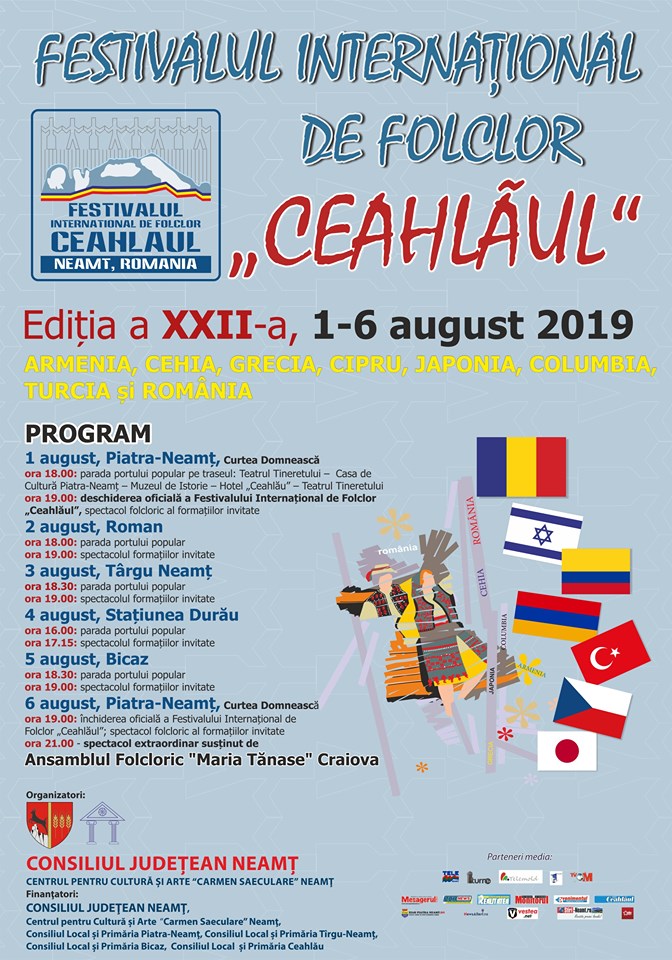 Între 1 şi 6 august, Centrul pentru Cultură şi Arte „Carmen Saeculare” Neamţ va organiza cea de a XXII-a ediţie a Festivalului Internaţional de Folclor „Ceahlăul”.