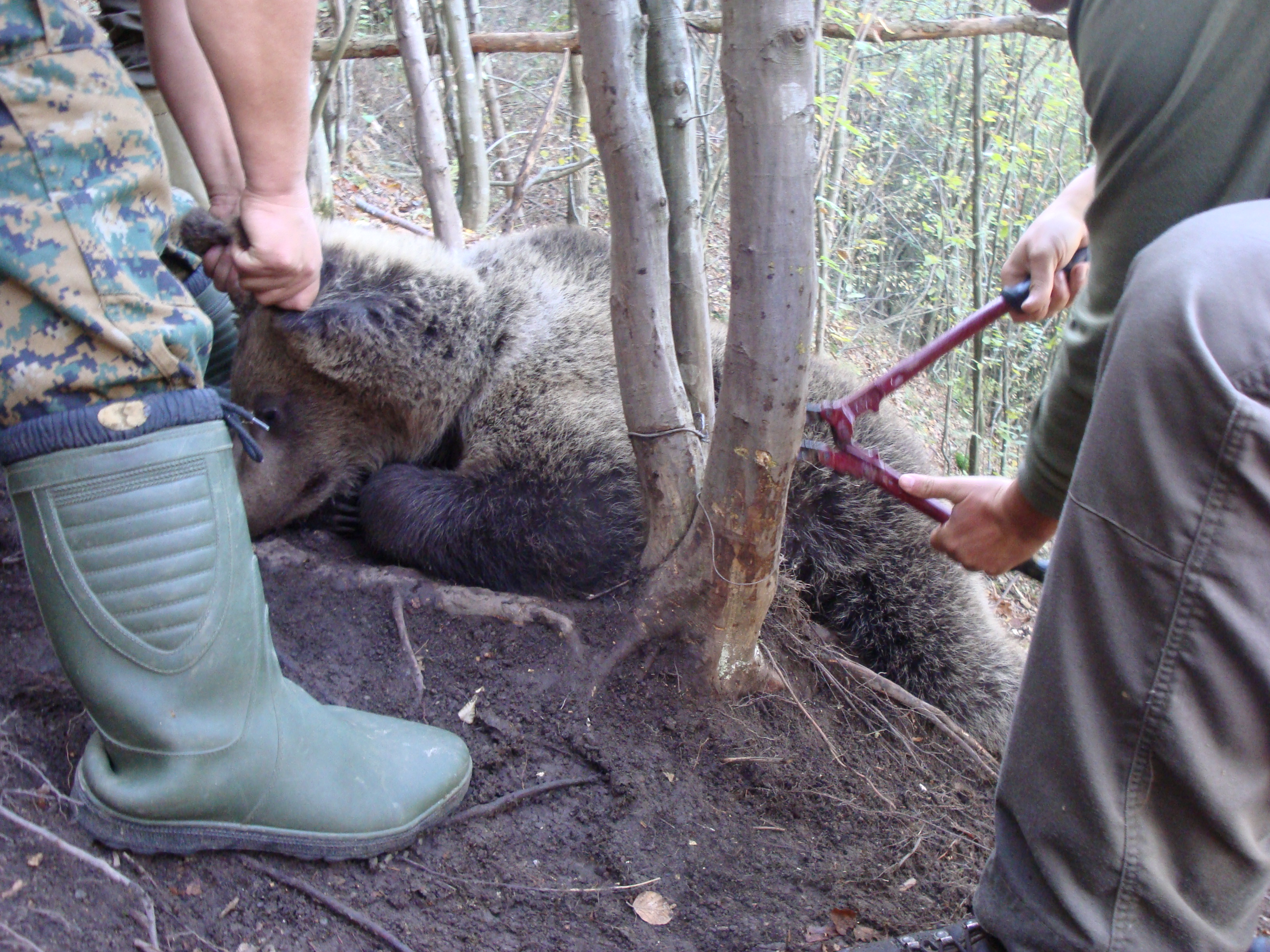 Jandarmii harghiteni, împreună cu polițiștii harghiteni și un angajat al Centrului de Reabilitare a Urşilor din oraşul Bălan au eliberat un pui de urs prins într-un posibil laț, în afara orașului Bălan.
