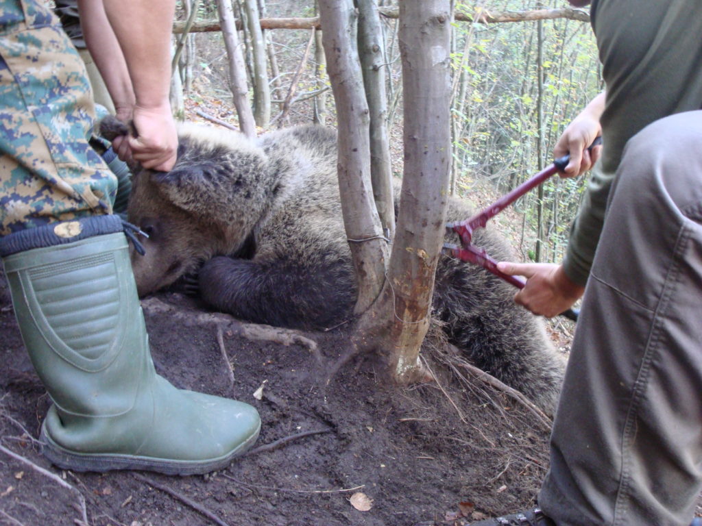 Intervenția s-a dovedit a fi una extrem de dificilă, atât din cauza întunericului, cât și datorită prezenței în zonă a ursoaicei ce avea cu ea încă un pui. După sosirea jandarmilor la fața locului, din discuțiile purtate cu polițiștii aflați acolo și din constatarea lor proprie, a rezultat faptul că în posibilul laț este prins un pui de urs, iar ursoaica cu cel de-al doilea pui se află tot acolo, fiind deosebit de agitată, locul unde se aflau urșii fiind într-o zonă greu accesibilă.