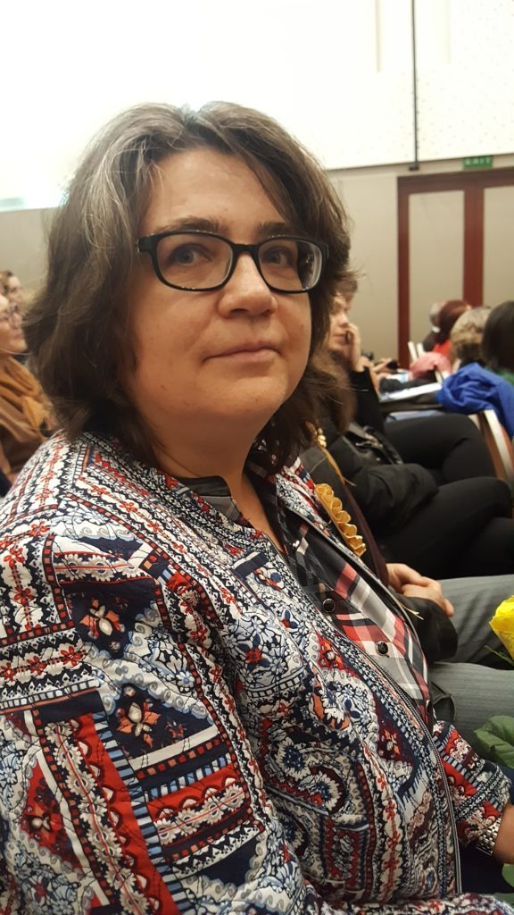 Cu echipa centenarilor a sosit foarte stăpână pe genunchii ei, ca să nu cedeze emoțiilor, Daly Marciuc, directoare a Colegiului Național „Mihai Eminescu” din Satu Mare.
