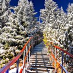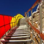 Scara care urcă pe Vârful Toaca din Ceahlău, împodobită cu drapelul României