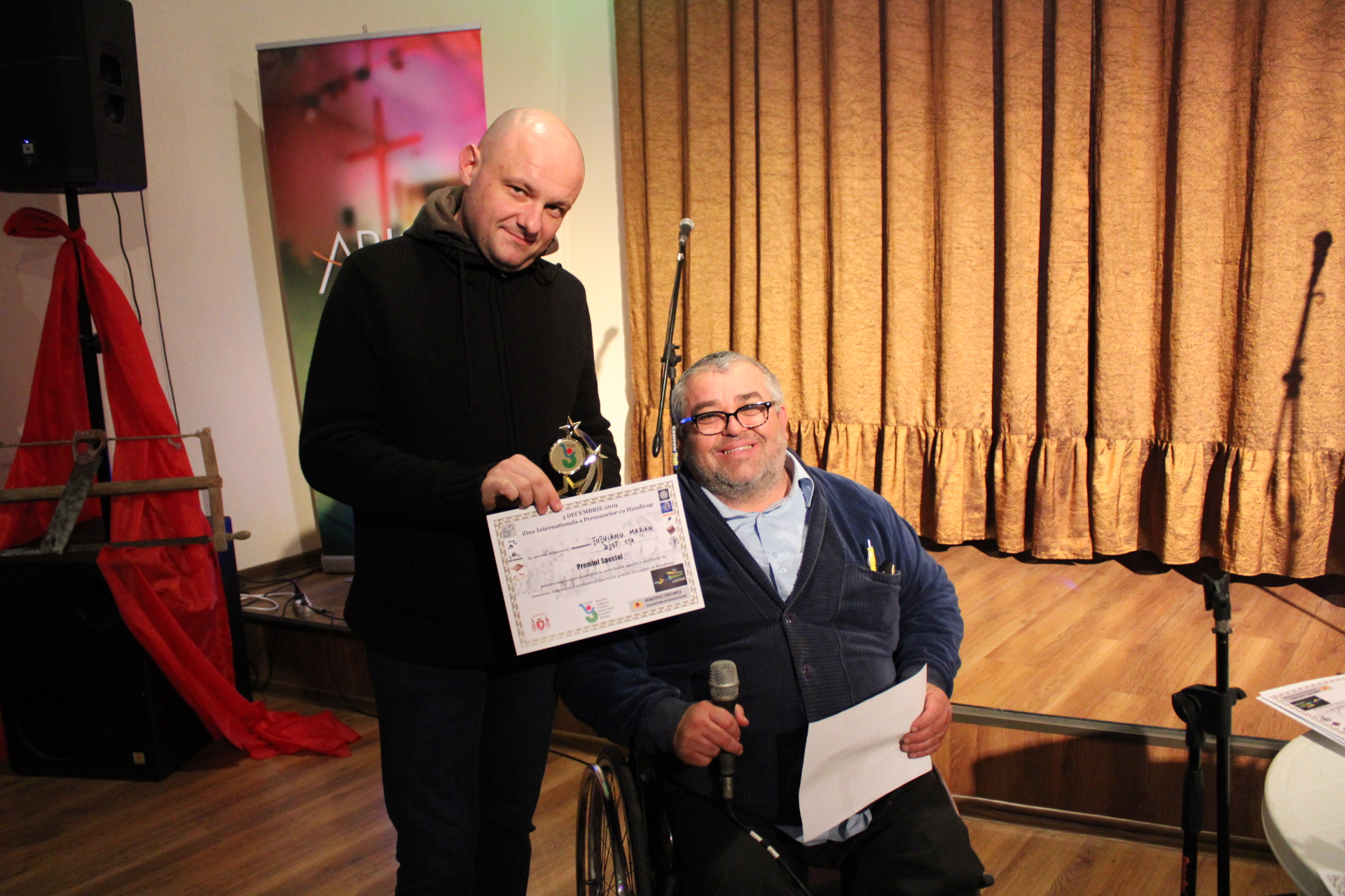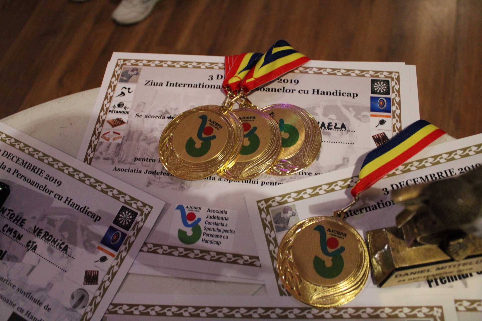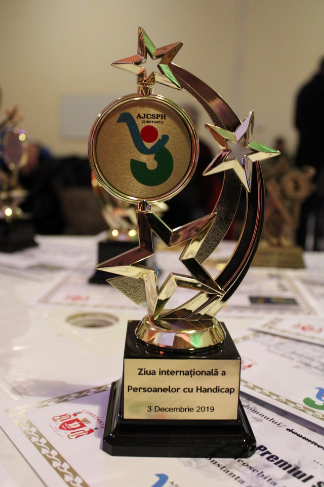 Asociatia Judeteana Constanta a Sportului pentru Persoane cu Handicap (AJCSPH) a sarbatorit pe data de 3 decembrie, impreuna cu partenerii si membrii acesteia, Ziua Internationala a Persoanelor cu Dizabilitati, prilej cu care au fost premiate atat institutiile care ne-au fost alaturi in anul 2019, cat si oamenii care au pus umarul pentru ca evenimentele AJCSPH sa se desfasoare in cele mai bune conditii. Recunostinta noastra se indreapta catre doamnele si domnii Fagadau Decebal (Primaria Constanta), Cocos Florin (SPAS), Zahariciuc Iulia (SPAS), Scutariu Mihaela (SPAS), Ghitulesc Anca (DGASPC), Lica Florian (DGASPC), Tutuianu Marian (DJST Constanta), Bacioiu Marius (ARKA), Bacioiu Cristian (ARKA), Ghita Lucian (ARKA), Antohe Veronica (Complexul Muzeal de Stiinte ale Naturii Constanta), Carutasu Mihaela (Impreuna pentru Viitor Constanta), Ghita Mircea (Cuget Liber), Bocai Marian (Ziua de Constanta), Mititelu Daniel (Casa de Cultura Ioan N. Roman – Medgidia), Andrei Radu-Dan (Asociatia Sport Pentru Sanatate), dar si spre alti parteneri si voluntari (unii chiar dintre membrii nostri) care si-au adus aportul la bunul mers al asociatiei de-a lungul anului 2019.