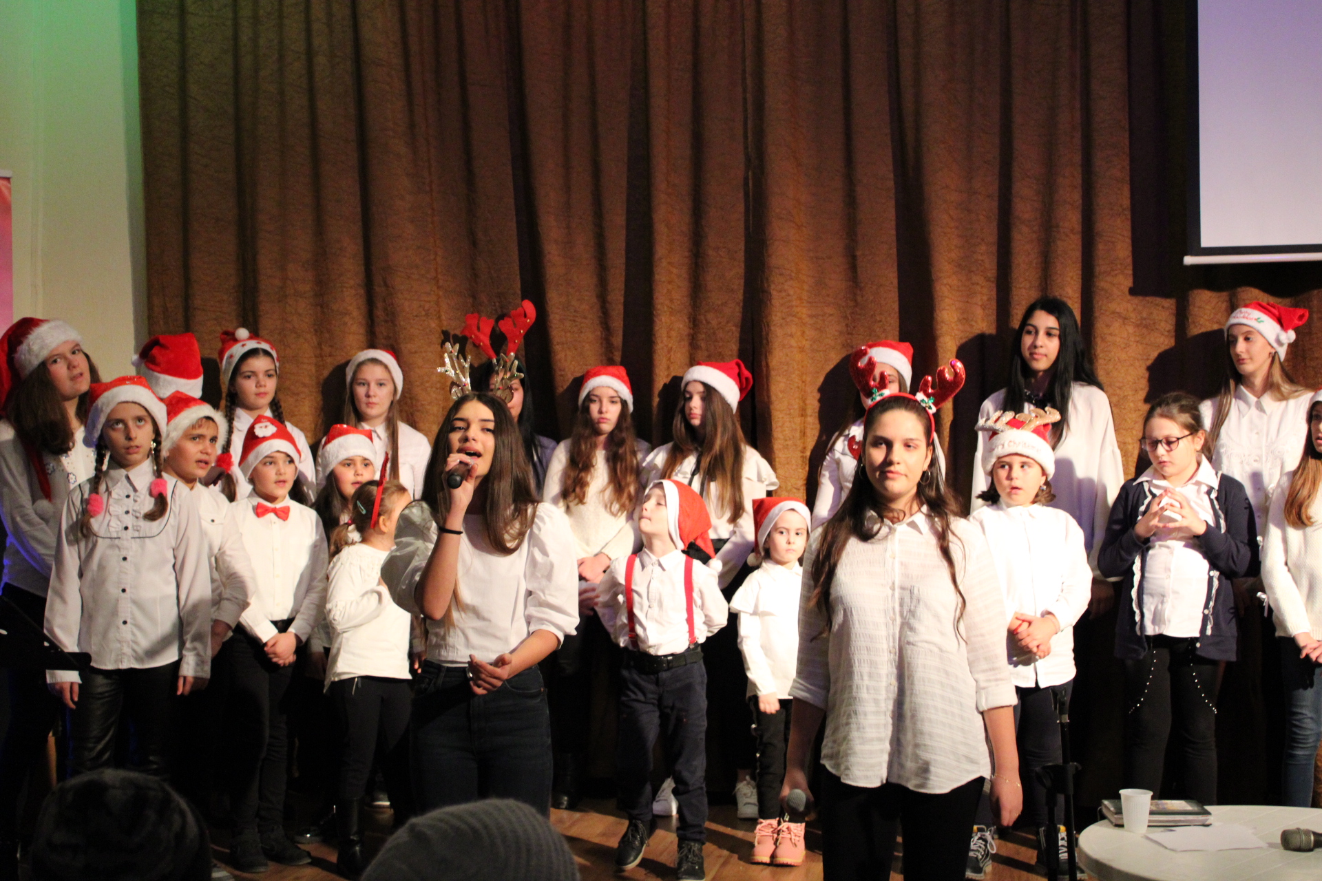 Programul artistic a fost asigurat de domnul profesor Dan Mititelu si de corul de copii de la Casa de Cultura Ioan N. Roman din Medgidia, care au incantat audienta cu frumoase cantecele si colinde specifice sarbatorilor de iarna.