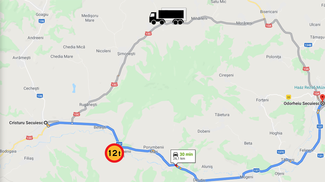 S-a finalizat construirea podului provizoriu pe drumul județean 137 între localitățiile Dejuțiu și Porumbenii Mari prin intermediul căruia va fi asigurată circulația autovehiculelor. Pentru mijloacele de transport cu masa totală mai mare de 12 tone circulația se desfășoară în continuare pe  drumurile naționale 13A și 13C, ruta Odorheiu Secuiesc – Morăreni – Rugănești – Cristuru Secuiesc.