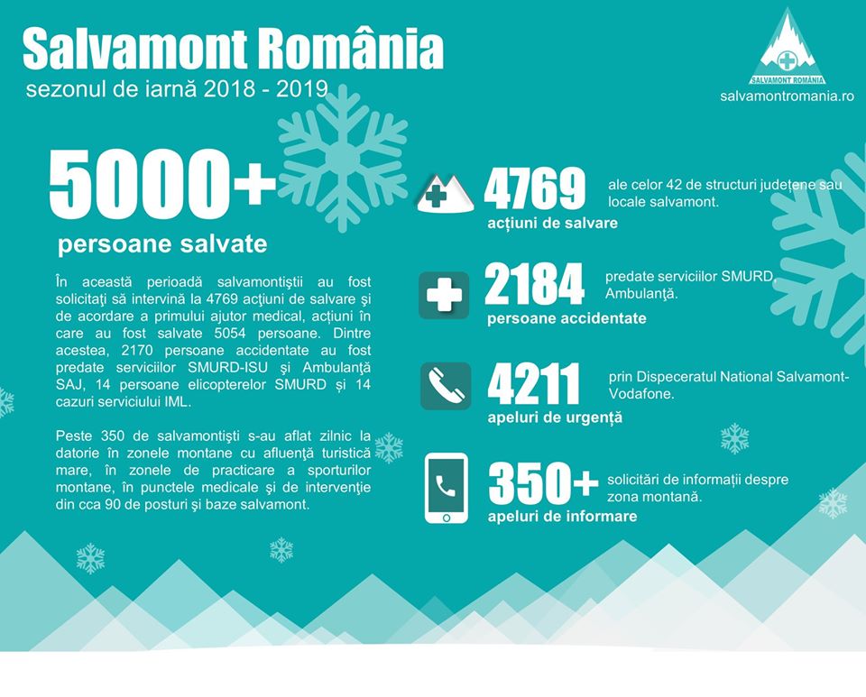 Salvamont Romania vă îndeamnă la prudență și responsabilitate în practicarea sporturilor de iarnă și , îngrijorați de creșterea alarmantă a numărului de accidente pe munte vă prezentăm raportul de activitate pe sezonul de iarnă 2018-2019