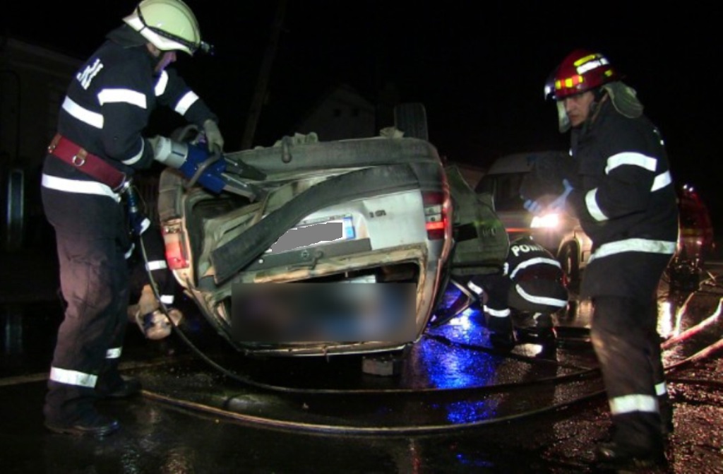 Coliziune auto urmată de distrugerea unei porţi şi răsturnarea unui autoturism, în curtea unui imobil din comuna Tomeşti.