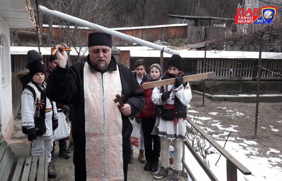 În această dimineată, părintele Stelian Cramba (parohia Sfântul Nicolae, Târgu Neamț) a ajuns cu Iordanul la casele de pe strada Cetății.