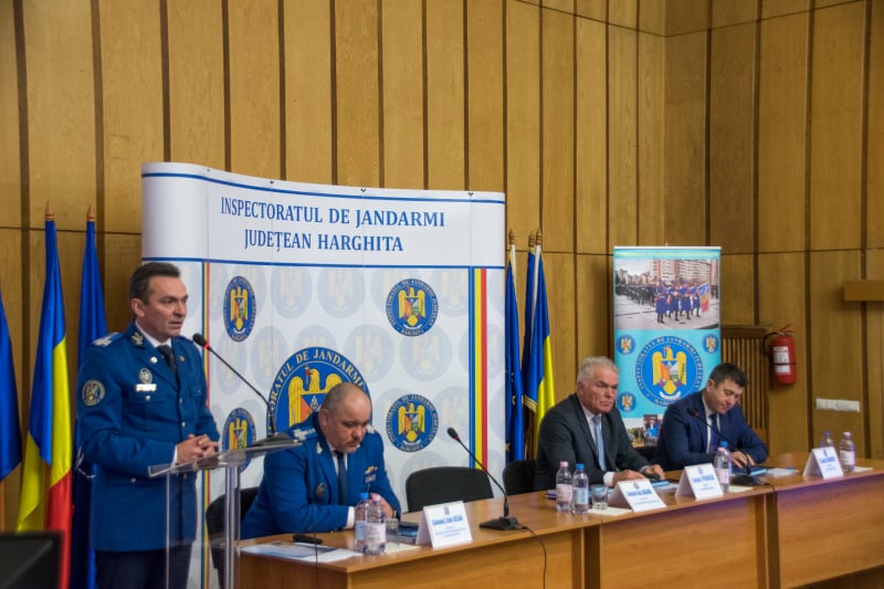 Activitatea a fost onorată de prezenţ colonelului Uzlău Liviu- directorul Direcției Ordine și Siguranță Publică a Jandarmeriei Române, Proca Ioan- prefectului județului, Borboly Csaba- președintele consiliului județean și a reprezentanților instituțiilor cu care inspectoratul cooperează și colaborează, precum și a cadrelor ce formează colectivul inspectoratului.