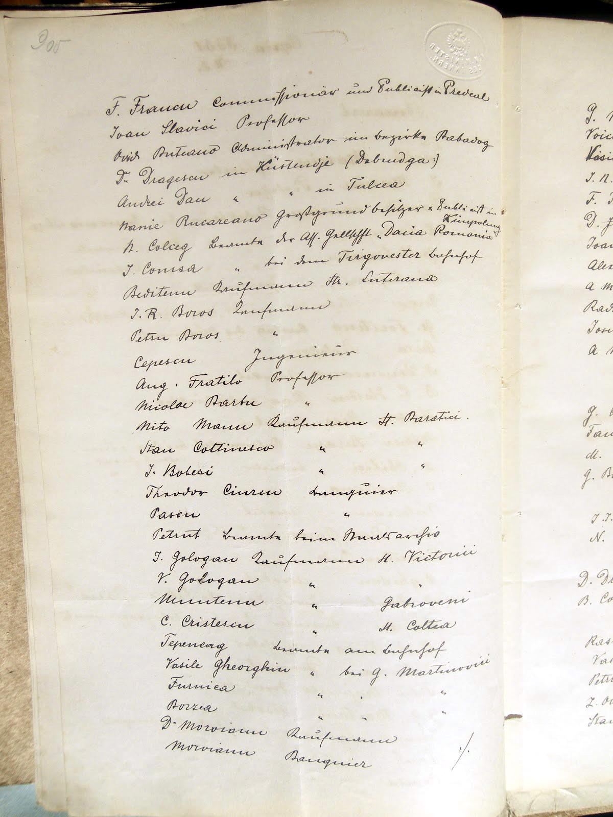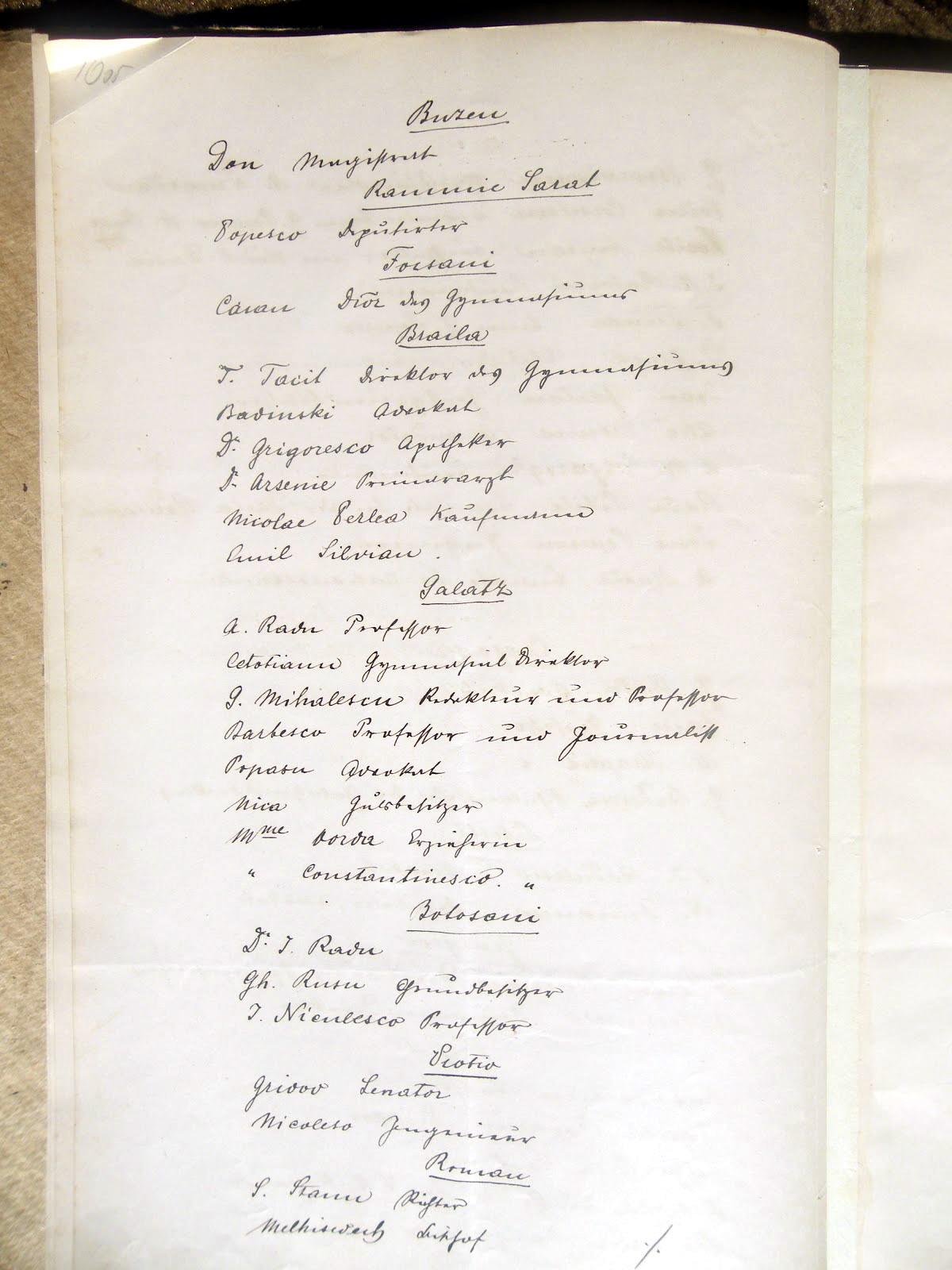 Referindu-ne la ordonanţa din 26 mai a.c. nr. 2753/M. I., avem onoarea să Vă trimitem lista celor mai activi membri ai societăţii, care trăiesc în principalul oraş al României, precum şi în oraşele din provincie.