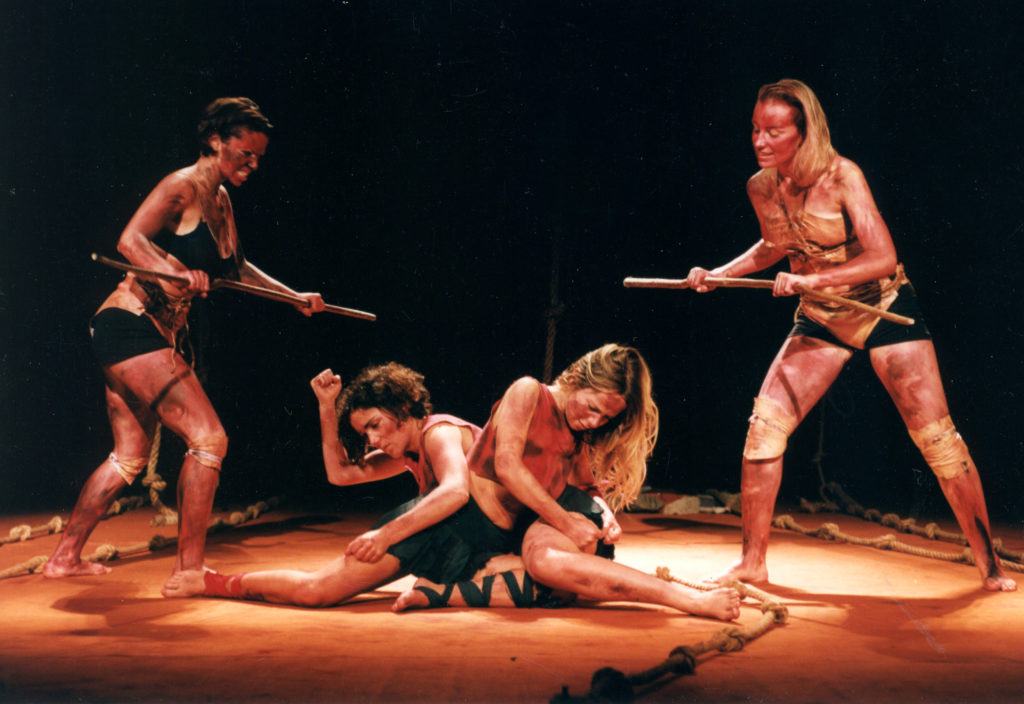 Cu gândul la vremuri mai bune, iată o fotografie de la premiera spectacolului „Împăratul muștelor” (20 octombrie 2001), primită de la un om bun din TT. De la stânga la dreapta: Olimpia Mălai, Vasilica Oncioaia, Nora Covali, Dorina Maria Haranguş.