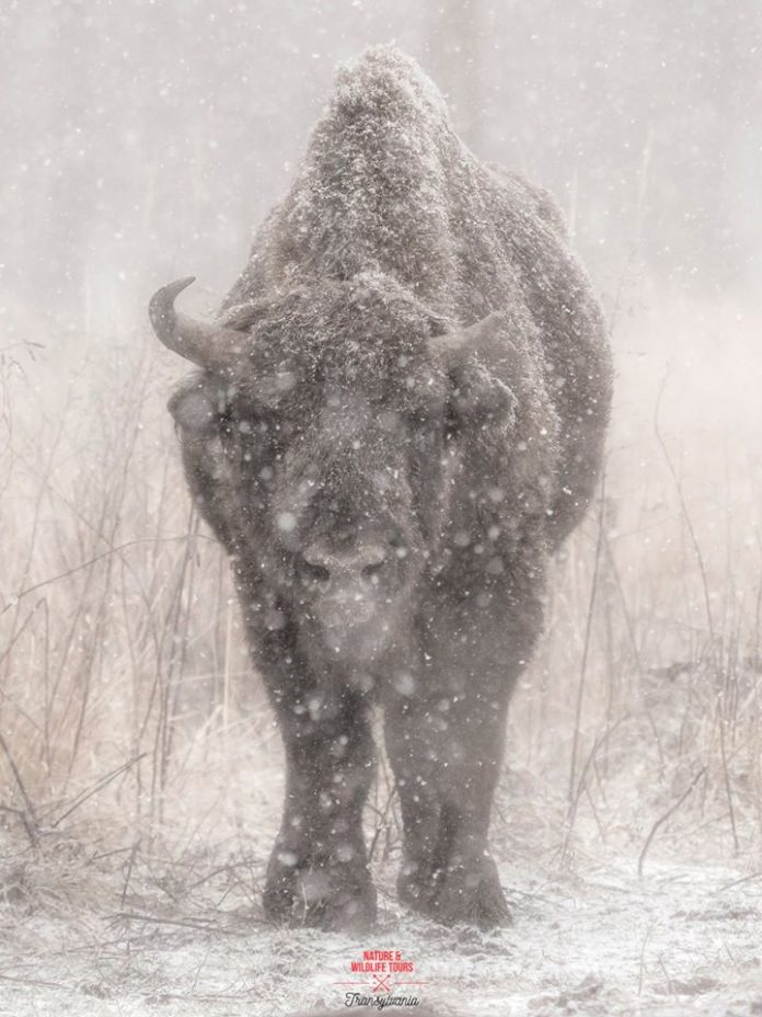 Iarna în Parcul Natural Vânători-Neamț/ Zimbrul, surprins în toată splendoarea sa