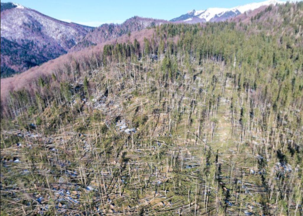Din acestea, pe o suprafață de 1.058 de hectare s-au înregistrat doborâturi în masă, volumul estimat al pagubelor fiind de circa 290.000 metri cubi.
