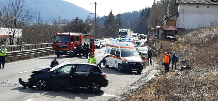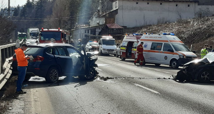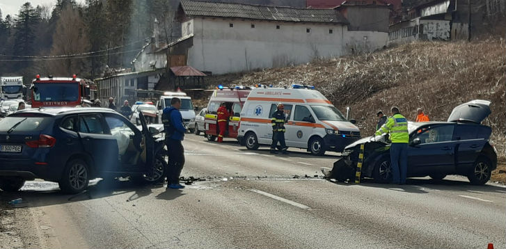 Accident pe DN1, la intrare in statiunea Busteni (FOTO). Un jeep și un autoturism au fost grav avariate. Poliția face cercetări.