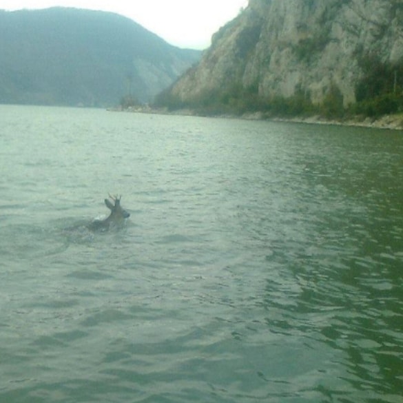 Imagine rară – cerb trecând înot Dunărea din România în Serbia
