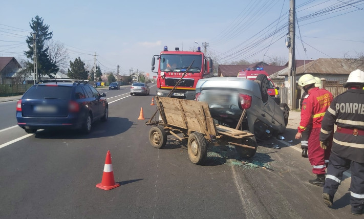 O masina a aterizat pe plafon dupa ce a lovit o caruta
