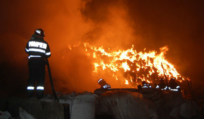 Incendiu violent la un depozit de furaje din comuna Colceag