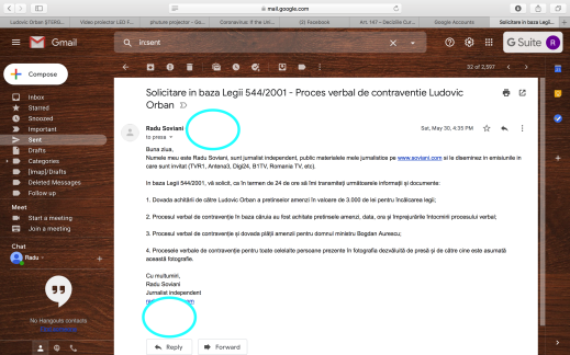 Ca jurnalist, în 30 mai 2020, ora 16.35, am făcut următoarea solicitare de informații publice: