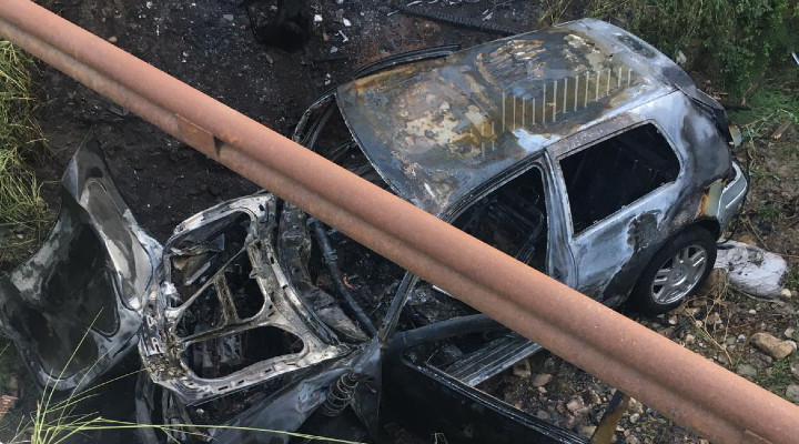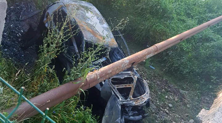 În urma impactului, autoturismul a luat foc și a fost distrus în totalitate.