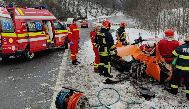 O victima inconstienta, dupa ce o masina a iesit in decor pe DN1 (FOTO)