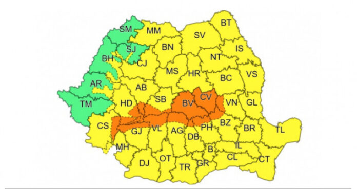 Cod galben de precipitatii in aproape toata tara, cod portocaliu de ninsoare la munte