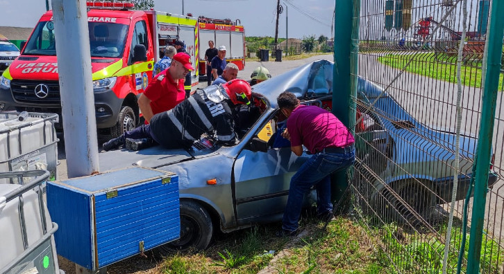 Sofer grav ranit, dupa ce a intrat cu masina intr-un stalp (FOTO)