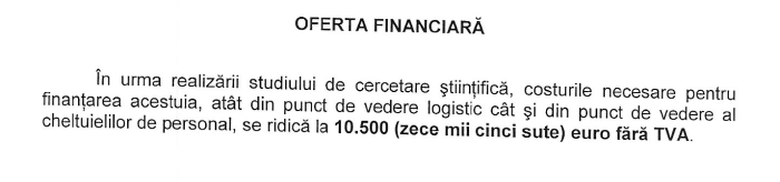 Prin urmare, prețul ofertat de Centrul de Informare și Documentare Economică -INCE din Academia Română (și acceptat) de către Poșta Română, era, conform ofertei din 27 ianuarie 2010, de fix 10.500 de Euro.