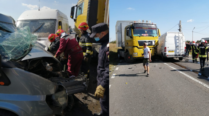 Accident grav pe DN1 B, la Loloiasca, intre un TIR si doua dube (FOTO)