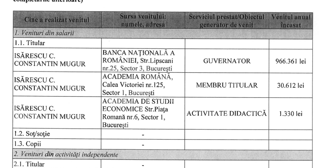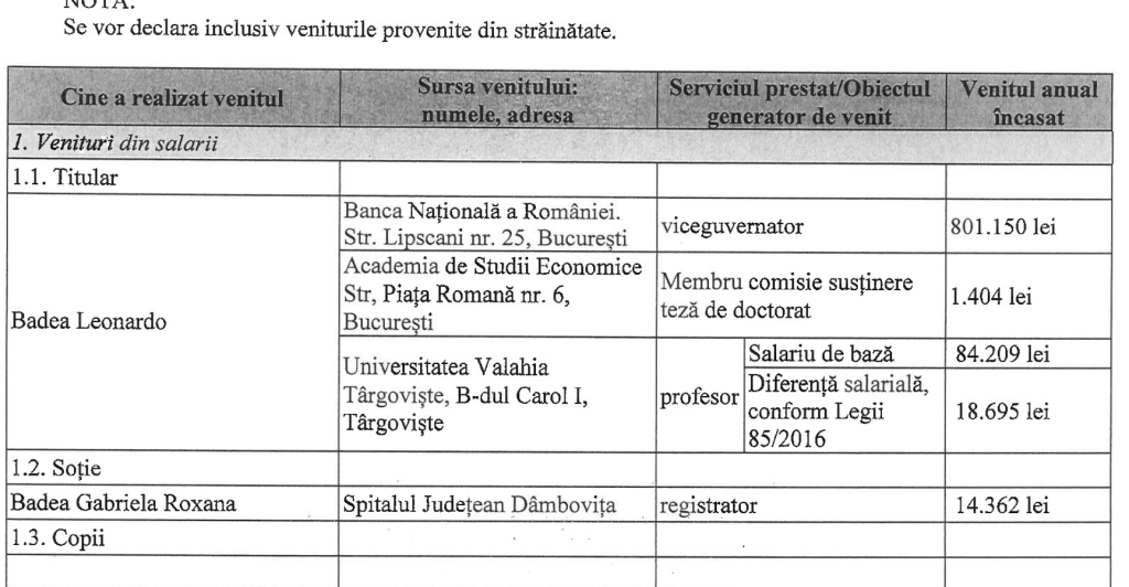 Florin Georgescu, prim-viceguvernatorul BNR, a declarat un salariu de 910.000 lei anul trecut, în scădere față de cel de 1,36 milioane lei din 2019, când a încasat bonusul de pensionare. El a mai raportat și o pensie de 158.000 lei (cu 22.000 lei mai mare decât în 2019), la care se adaugă și o pensie specială de fost parlamentar PSD de peste 100.000 lei. Nu e problema ca se cumuleaza, lui ii convine, voua daca nu va convine, mai stati o tura.