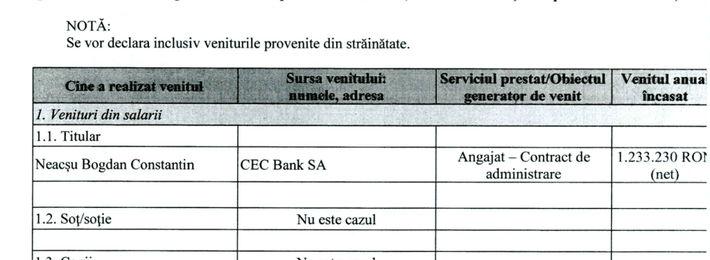 Cum a ajuns sef Bogdanel, cum si-a dosit declaratiile de avere sau si le-a secretizat. Noi am pus mana pe una din 2020 care arata ca Bogdan Toncescu incasa bine de tot si ca „angajat”. Sursele noastre bine informate spun ca noua sa functie ii va aduce pe putin 5500 de euro pe luna in mana. Oricum, sta bine de acasa, adica in strainatate, caci are un apartament la New York ce valoreaza un milion de dolari.