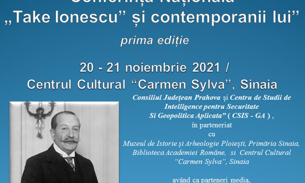 Conferința Națională ”Take Ionescu și contemporanii lui” se va desfășura la Sinaia, la Centrul  Cultural ”Carmen Sylva”, în perioada 20-21 noiembrie. Evenimentul, organizat de Centrul pentru Studii de Intelligence și Geopolitică Aplicată,  sub egida Consiliului Județean Prahova și Primăria Sinaia, va avea loc chiar în lăcașul întemeiat de Regina Elisebeta a României, care purta pseudonimul literar, Carmen Sylva.