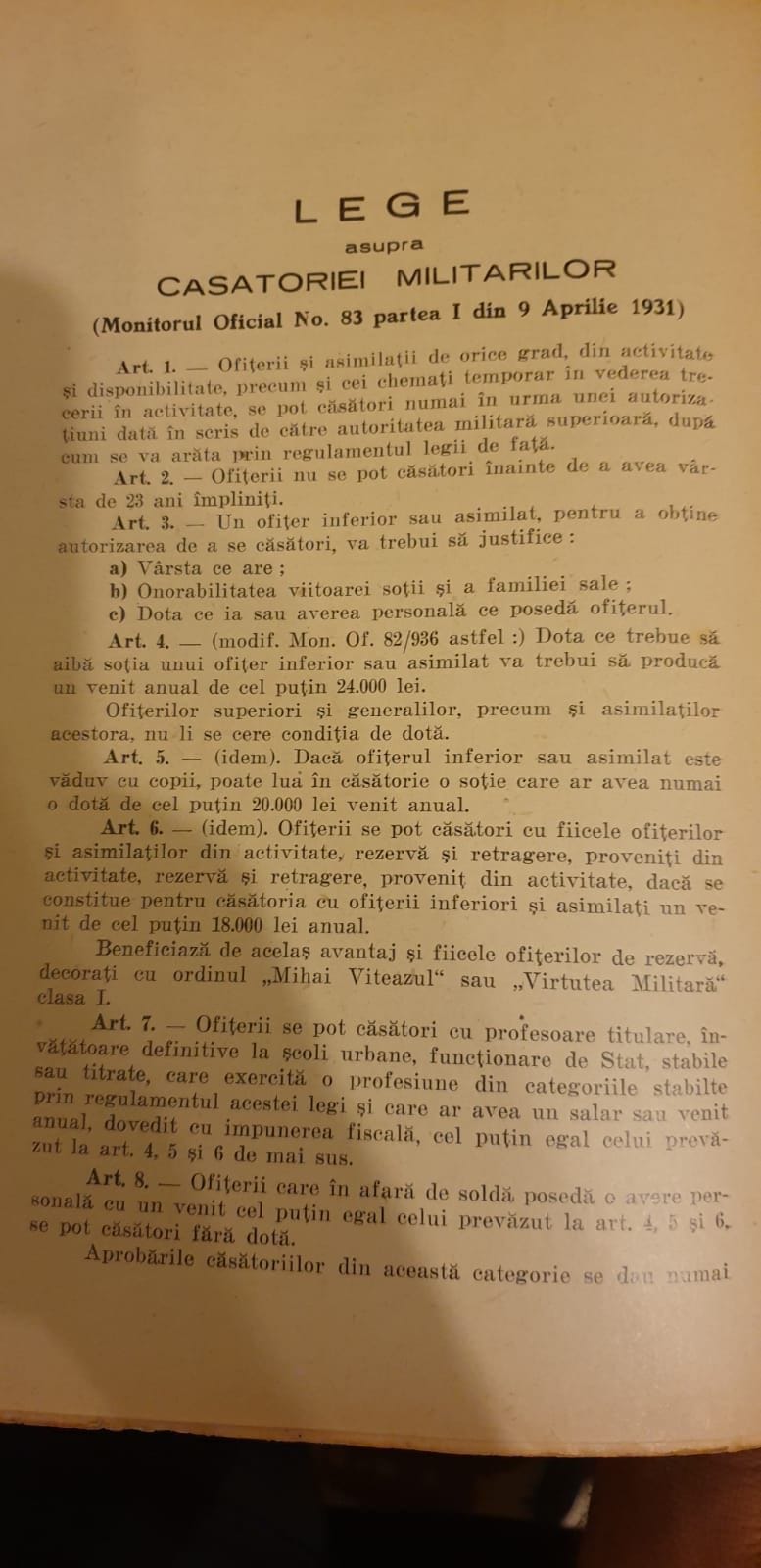 INEDIT/LEGE asupra CASATORIEI MILITARILOR – 1931