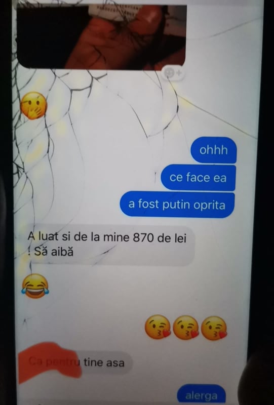 „Cocoselul” pentru o „pasarica” si cu pasarele la mansarda – Palas Cristinel Tiberius Marius de la Serviciului Rutier al I.J.P.Prahova (Biroul Rutier Ploieşti) – i-a transmis (pe WhatsAPP) tinerei A.M din Ploiesti ca a „potcovit” cu suma de 870 ron pe „rivala” sa: „A luat si de la mine 870 de lei! Sa aiba…Ca pentru tine asa”.
