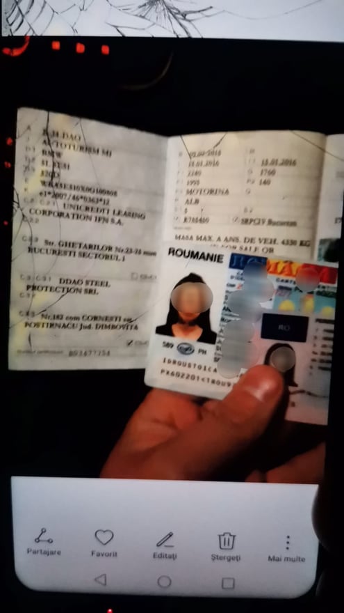 Nu, acesta gandind cu „cocoselul” de jos i-a transmis spre dovada si print screen-uri dupa: certificatul de inmatriculare al autotursimului condus de „rivala” sa, cartii de identitate, permisului de conducere si dovada SUPREMA – procesul-verbal de contraventie.