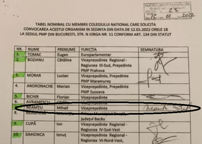 Mihail Neamțu, care ocupă funcția de vicepreședinte al PMP, s-a numărat printre liderii care au semnat convocarea, în 12 ianuarie a.c., a forurilor de decizie ale partidului în care s-a votat convocarea Congresului pe 19 februarie a.c.