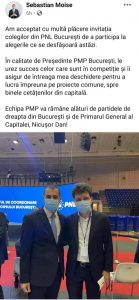„Eu, Cătălin Lucian Iliescu, președinte ales din anul 2018 al PMP Sector 5, fost Senator al României, am decis să îmi înaintez demisia din Partidul Mișcarea Populară (PMP) pentru că în acest moment, PMP s-a distanțat de valorile și de politica în care am crezut.