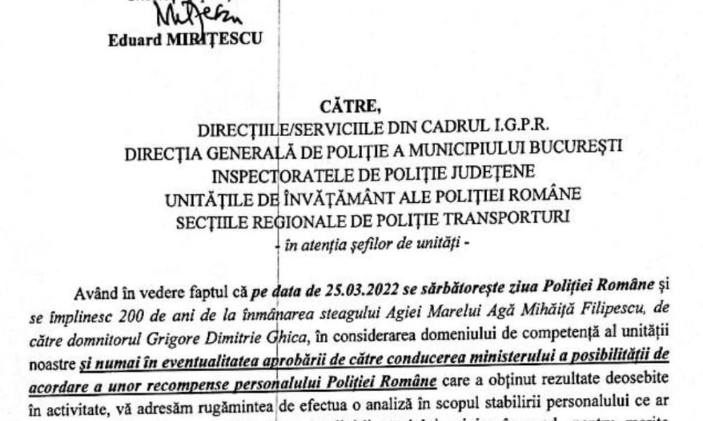„Suntem curioși dacă șefii colegilor noștri din teritoriu se vor face că plouă și că nu vor avea posibilitatea să identifice subordonați care s-au remarcat în mod deosebit în activitatea profesională”