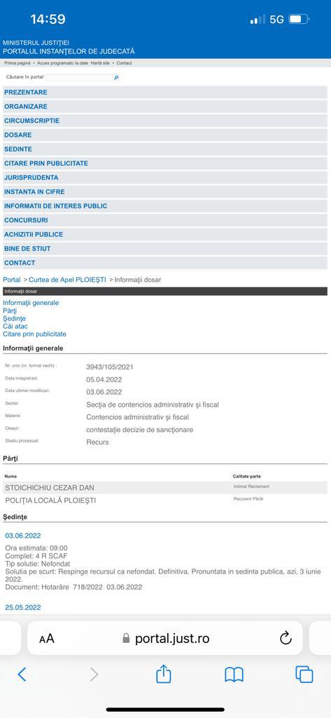 In data de 03.06.2022, Instanta a respins recursul analfabetului functional Albu Catalin si trebuie sa raspunda penal pentru neindeplinirea unei hotarari judecatoresti care era executorie din prima instanta si pecuniar pentru prejudiciul cauzat bugetului local pentru incompetenta sa!