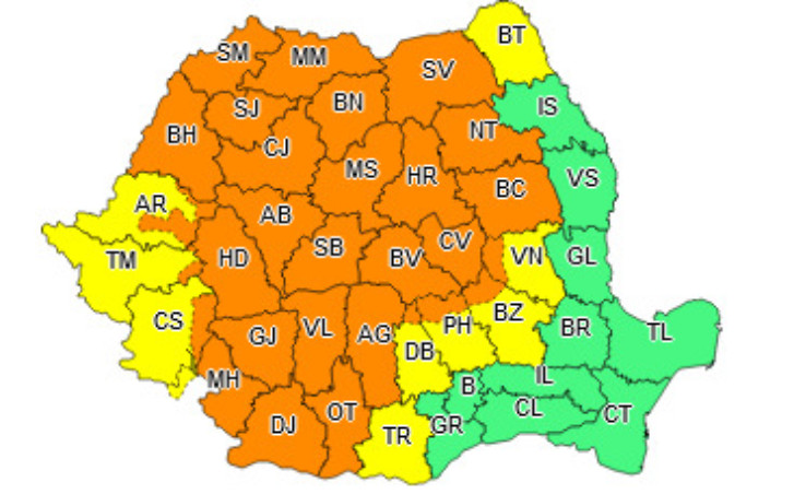 Sâmbătă, până la ora 22, avem Cod Portocaliu de precipitații la munte