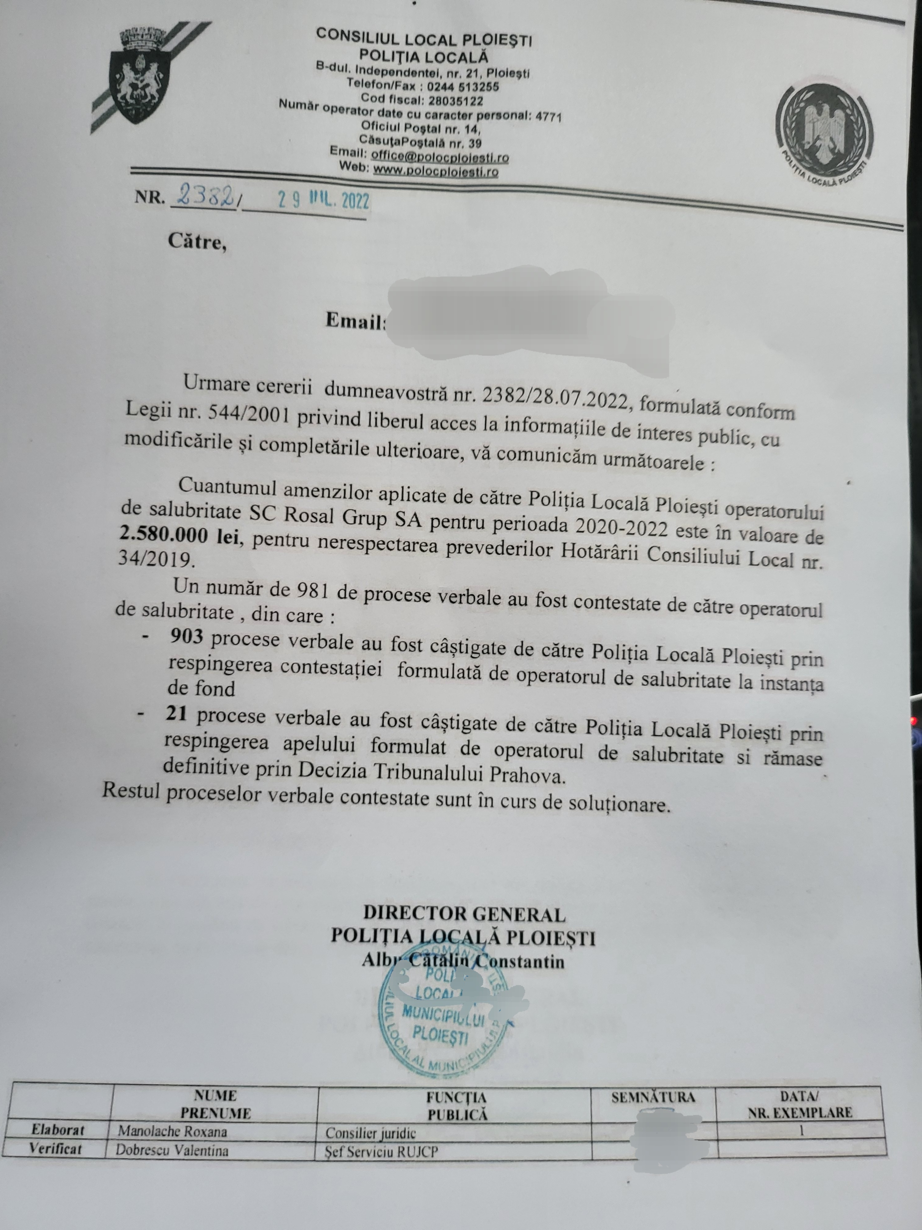 „Deși de mai bine de un an și jumătate, primarul municipiului Ploiești, Andrei Liviu Volosevici, a solicitat întrunirea AGA a ADI Deșeuri Prahova, fiind mandatat de Consiliul Local al Municipiului Ploiești să voteze rezilierea contractului cu operatorul sus amintit, acest lucru nu s-a întâmplat nici până în prezent”.