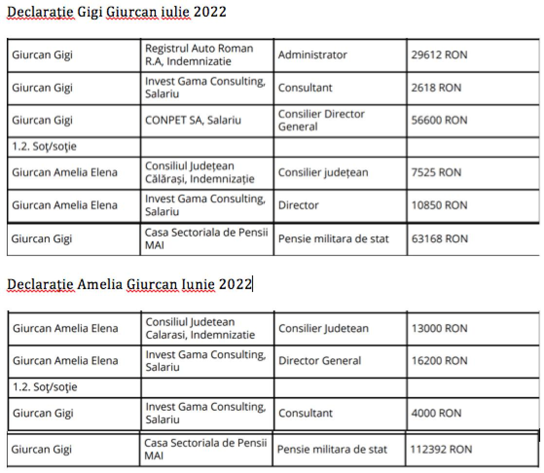 Soția domnului Giurcan a fost până acum câteva zile șefă la USR Călărași. El este consilierul directorului general de la Conpet, cu zero experiență în domeniu. Recent a fost numit și în consiliul de administrație la Registrul Autor Român, bine-cunoscut pentru remunerațiile substanțiale pe care le oferă.