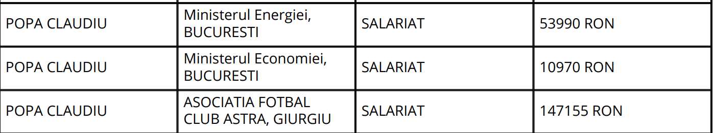 Devine director la Rapid București pentru șase luni și apoi a lucrat pentru Astra Giurgiu (patronul Astrei, Ioan Nicolae, condamnat pentru că a dat ilegal bani PSD-ului, este un fost securist). La fel de logic, domnul Popa a trecut apoi la Ministerul Energiei. Anul trecut domnul Popa a încasat net 6.880 de euro pe lună.