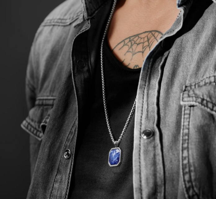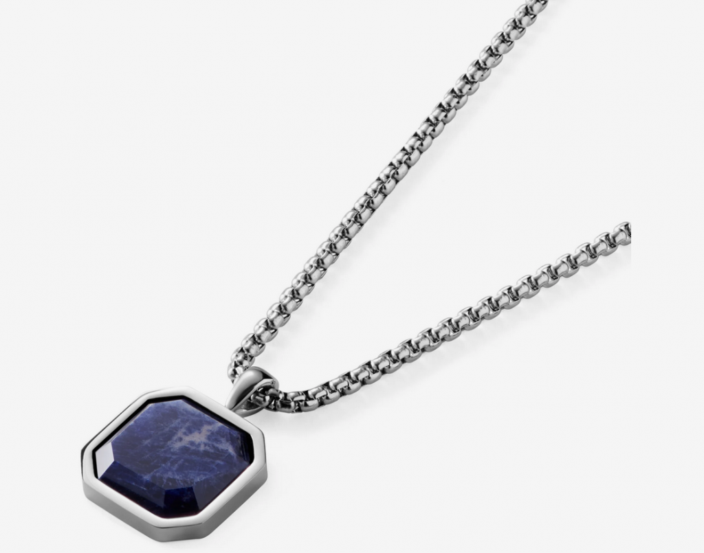 Revenind la colier, lungimea sa ajustabilă mi s-a părut extrem de utilă, deoarece nu știam exact ce dimensiune i-ar fi potrivită fratelui meu. Superbul colier Orisun Andrew are un pandantiv de excepție, confecționat din sodalit, despre care se spune că este o piatră ce oferă liniște sufletească, un somn mai bun și ajută purtătorul să ia decizii raționale și obiective.