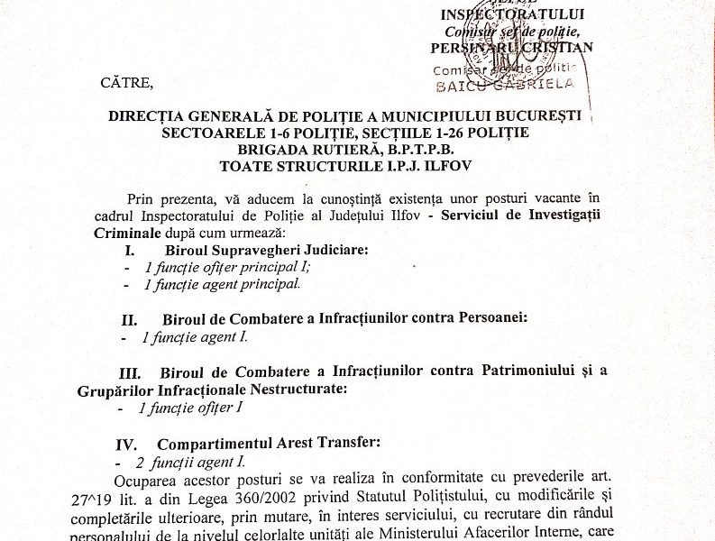 O astfel de practică rezultă inclusiv din adresa de mai jos din care puteți observa că polițiștii sunt cercetați pentru că au întocmit un dosar penal pentru conducerea unui vehicul neînmatriculat pe drumurile publice și inclusiv fără permis de conducere, soției unui șef de Ocol silvic, apropiat al șefilor din poliție, prin prisma disponibilității pe care o are pentru găzduirea petrecerilor organizate de aceștia, departe de ochii lumii.